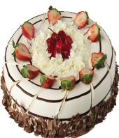 8寸圓形鮮奶水果蛋糕,巧克力片、時令水果搭配。